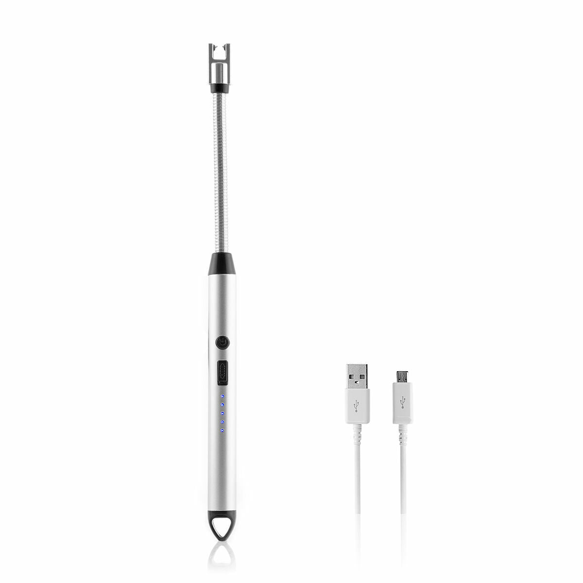 - Erittäin pitkä muotoilu: Ladattava ja joustava sähkösytyttimemme tarjoaa suuria etuja originellin ja erittäin pitkän muotoilunsa ansiosta, jonka vuoksi se mukautuu useisiin eri käyttötarkoituksiin. Sen ergonomisen kahvan päässä on reikä ripustamista varten. Tätä modernia metallisytytintä on ihanteellinen käyttää keittiössä, kynttilän sytyttämisessä jne.