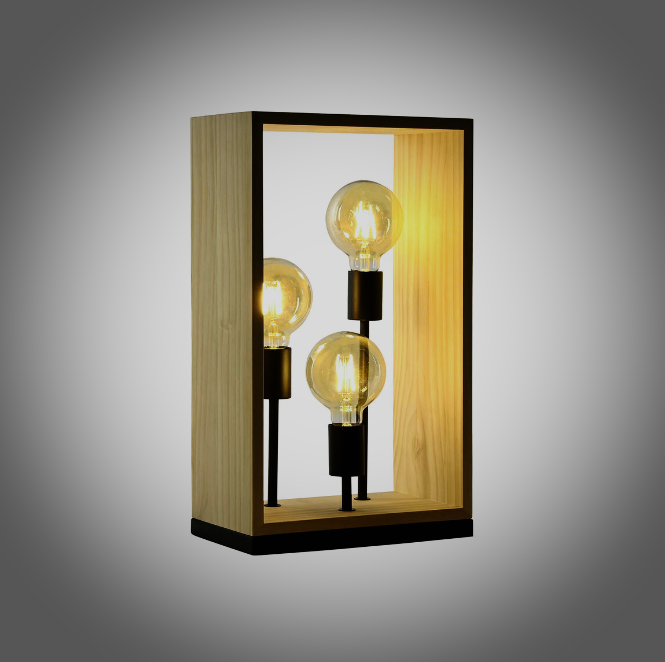 Pöytälamppu Home ESPRIT Ruskea Musta Luonnollinen Puu Rauta Mäntypuu 50 W 220 V 30 x 16 x 50 cm.
